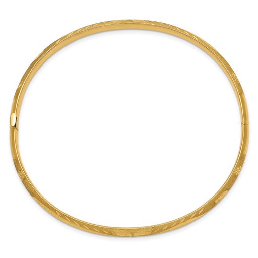 10K Gold Florentine Engraved Hinged Bangle Bracelet, 5mm (3/16”) Brushed Diamond-Cut Finish, 7.75 Inch